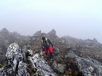 Salimos a las 6:51 am luego de desayunar a buscar el camino al Pico El Buitre con 4650 msnm y pico número 11 en altitud de Venezuela que se haya frente y al sur del Pico Los Nevados, Atravesamos el campamento entre los frailejones, comenzamos el ascenso al lado de la cascada, transitando los arenales primero y luego los accidentados riscos de su cresta noreste sin ninguna información a buscar su cumbre, la neblina estaba muy baja, el día muy tapado y eso hacía más difícil aún encontrar el camino correcto, llegamos a una explanada donde con un buen estado del tiempo se podría divisar el pico, pero no se veía nada, Sacamos las fotos e información que teníamos y tras unos minutos estudiando el camino, decidimos subir a una formación que parecía ser la cumbre, una vez arriba el clima abrió y nos dimos cuenta que la cumbre estaba de nuestro lado izquierdo, seguimos el camino por las gigantescas rocas y los arenales hasta lograr acercarnos lo más posible, luego de pasar en entre las rocas filosas que conducen a la cumbre llegamos 9:13 am después de conseguirla y tomar las fotos pertinentes, bajamos hacia el campamento descansamos unos minutos y seguimos hacia el Pico Mucumamó.